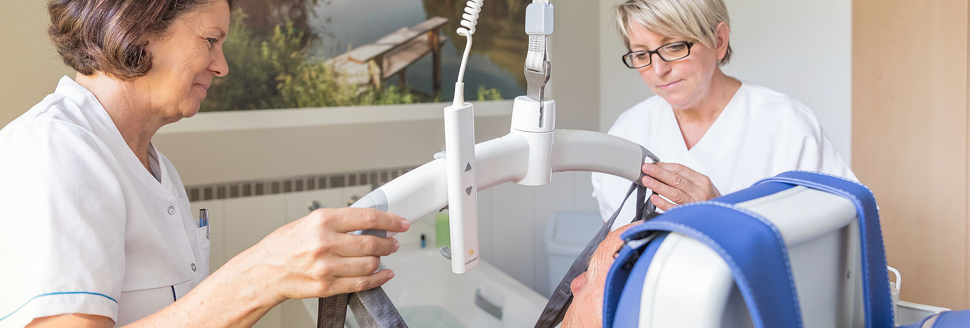 Nicole: man braucht sich keine Sorgen machen, hier wird niemand im Stich gelassen. Eine gewisse Flexibilität ist notwendig, weil an der Abteilung oft unvorhergesehene Ereignisse vorkommen, die akut erledigt werden müssen. Oder auch die Flexibilität was die individuellen Wünsche des Patienten betrifft. Wenn ein Patient zum Beispiel lieber abends duscht als morgens, soll das ermöglicht werden.