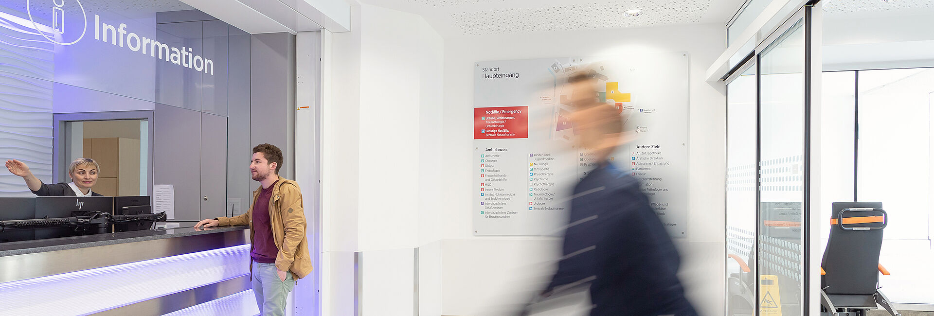 Das Team gibt bei Anfragen Auskunft über die Zimmernummer bzw. die telefonische Erreichbarkeit von stationären PatientInnen, wann auf den einzelnen Stationen Besuchszeit ist und wo sich die jeweiligen Ambulanzen oder Stationen befinden. Weiters sind die Angestellten in der Telefonzentrale für die Telekommunikation zuständig und rund um die Uhr erreichbar. Die Schranken an den Zufahrten zum Klikumgelände werden über die Vermittlung geöffnet. Jede/r Autofahrer/-in - außer Notarzt und Rettung - muss läuten, sobald er/sie in das Klinikumareal fahren möchte. Das ganze Gelände wird mittels Kameras überwacht, ebenso der Besucher- und Personalparkplatz. Bei Bedarf werden die Schranken geöffnet und Auskünfte über die Parkgebühren sowie den Zahlungsmodalitäten erteilt. Bei Problemen bei Parkplatzkassen und Parkkarten helfen die diensthabenden MitarbeiterInnen weiter.